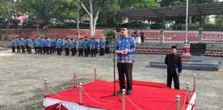 lampungselatan,www.irvatv.com Asisten Bidang Ekonomi dan Pembangunan (Ekobang) Sekretariat Daerah Kabupaten (Setdakab) Lampung Selatan Dulkahar memimpin apel mingguan, di Lapangan Korpri, Kalianda, Senin, (29/1/2024).