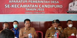 lampung Selatan, www.irvatv.com Bupati Lampung Selatan bersama para pejabat terkait menyelenggarakan kegiatan pembinaan aparatur desa didesa Sinar Pasmah, Kecamatan Candipuro, Selasa (15/02/2022).