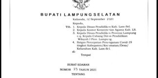 Bupati Lampung Selatan Keluarkan Surat Edaran, Uji Coba Sekolah Tatap Muka...