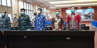 lampung selatan, www.irvatv.com Bupati Lampung Selatan, H. Nanang Ermanto didampingi Sekretaris Daerah Lampung Selatan, Thamrin, S.Sos, MM lakukan rapat koordinasi (Rakor) terkait perkembangan Covid...
