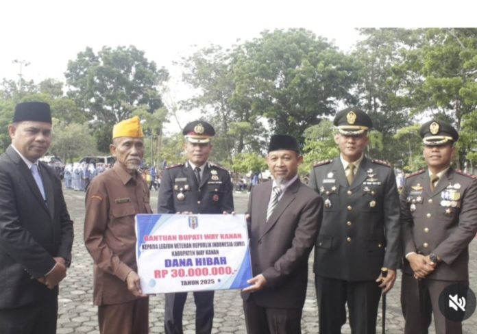Upacara kemudian dilanjutkan dengan pemberian penghargaan serta penyerahan bantuan simbolis kepada perwakilan veteran sebagai bentuk penghormatan dan apresiasi atas jasa-jasa mereka dalam memperjuangkan kemerdekaan Indonesia