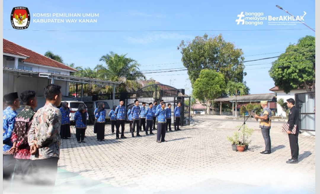 Komisi Pemilihan Umum (KPU) Kabupaten Way Kanan melaksanakan upacara peringatan Hari Kesaktian Pancasila yang berlangsung di lapangan kantor KPU setempat pada Rabu, 1 Oktober 2025.