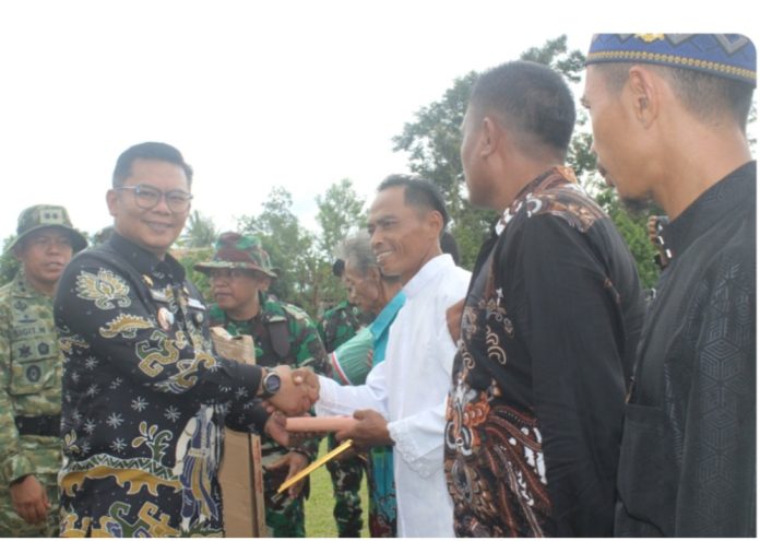 Sekretaris Daerah Kabupaten Way Kanan, Machiavelli Herman Tarmizi, S.STP., M.Si., menghadiri Upacara Penutupan TNI Manunggal Membangun Desa (TMMD) Ke-126 Tahun 2025 di Wilayah Kodim 0427/Way Kanan, yang dipusatkan di Lapangan Sepak Bola Kampung Sriwijaya, Kecamatan Umpu Semenguk, Kamis (06/11/2025).